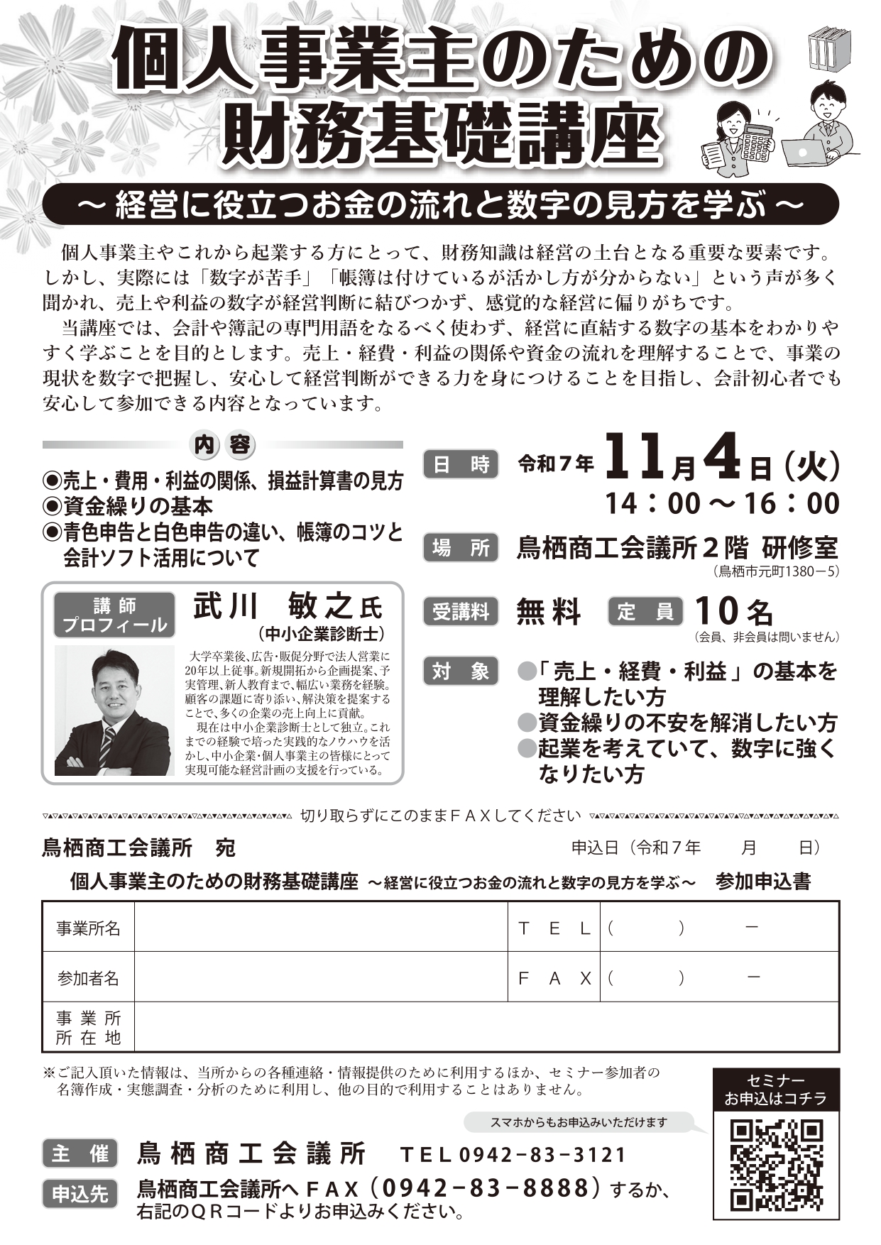 鳥栖商工会議所 > 企業向けサイト > セミナー・講習会情報 > 個人事業主のための財務基礎講座